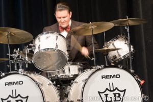Josh Duffee, longtime music director for the Bix fest, playing the drums.