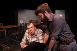 Andy Sederquist, left, and Andy Curtiss in “The Whistleblower’s Dilemma” at Playcrafters.