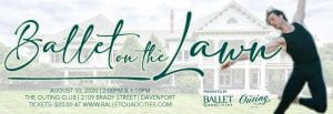 The 2 p.m. and 6 p.m. shows, at 2109 Brady St., will be on a temporary stage on the lawn at the 125-year-old, member–owned, private club. Audience members should bring their own chairs and blankets – there will be plenty of room to spread out on the lawn. Tickets will not be sold on site, but should be purchased for $20 at balletquadcities.com.