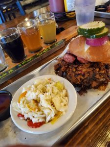 Bent River Brewing Company has me sold on the Bent House sandwich, it’s a triple attack of meats. One could say I get the meat sweats just thinking about it now. House smoked brisket, pork and Andouille sausage topped with a house made bbq was gifted to us savages by a group of beer drinking angels. I feel like a Neanderthal wiping the sauce out of my beard because I’m not using a silk handkerchief. I’d be in heaven with any of these three smoked meats by themselves, instead I have a menage-a-trois of debauchery in my mouth.