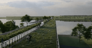 The project comes as the Illinois DOT is studying the future of the 55-year-old infrastructure and preparing to make decisions about the location and design of a new I-80 replacement bridge. Bison Bridge plans to have the current westbound lanes as a forested, vegetation-filled bison refuge – the largest wildlife crossing in the world — and the other side as a pedestrian-bike crossing, with many amenities.