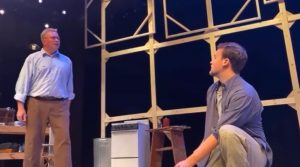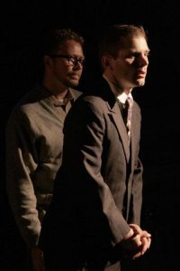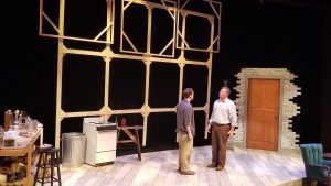 Tristan Odenkirk, left, and Mike Schultz on the Brunner Theatre stage.
