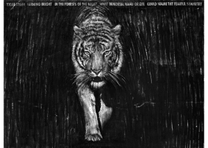 A graphite drawing of a tiger created by Bruce Walters, who has taught at WIU for 24 years.
