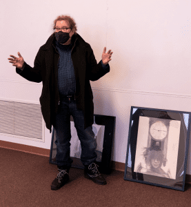 Walters setting up his artwork at the WIU Art Gallery in Macomb.