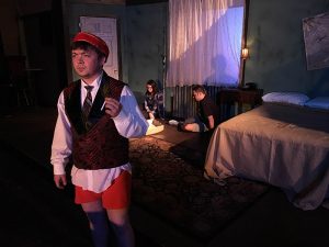 Peiterson is fantastic as the warped center of this vinyl record of loserdom, a man who travels in circles of his own making, looking to find his groove. McGinnis and Lyman do a great job as the half-wit drug dealers, mixing misplaced bravado with fumbling simplicity in a way that’s surprisingly not annoying. Their characters could’ve easily become grating in other hands, but each plays them down enough so that they come across as palatable. You don’t feel sorry for them, but you’re also not eagerly rooting for Peiterson to shoot them already and get it done with. The real revelation of the show was Lord, who would certainly be up for a Best Supporting Actor award for local stage for his performance if there was one (and really, why isn’t there? Perhaps we’ll create one for the end of the year… keep your eye on our site…), who takes an oily nebbish of a character and somehow makes him likeable and amusing, and also makes him somehow the moral center and catalyst of this strange show.