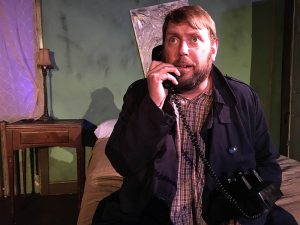 In essence, the show is about a man (Brant Peitersen) searching for his missing hand which was allegedly dismembered and taken from him 27 years ago. From what we can gather, he’s journeyed about looking for the hand, enlisting the help of an apparently oddly abundant subculture of people who deal in severed hands. This leads him to a couple of moronic, low-level pot dealers, Toby (Jordan McGinnis) and Marilyn (Liv Lyman), who try to scam him but quickly have the tables turned on them. The entire show takes place within the hotel room where Toby and Marilyn are being held captive, much to the initial disinterest, eventual glee and finally mixed interest of the receptionist, a seedy Peter Lorre type (Aaron Lord).