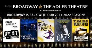 The 2021-22 Broadway at the Adler series features “Rent,” “Fiddler on the Roof,” “Cats,” and tributes to Simon & Garfunkel and Carole King. plus a rescheduled “Waitress” next June 1.