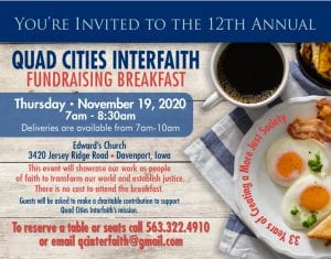 The Quad City Interfaith Breakfast will be serving up their 12th annual fundraising breakfast from 7 to 8:30 a.m. Thursday, at 3420 Jersey Ridge Rd, Davenport.