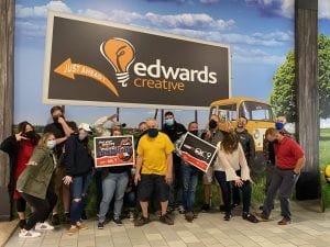Employees at Edwards Creative in Milan celebrate keeping it QC.