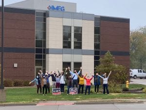 Employees at IMEG in Rock Island celebrate keeping it QC.