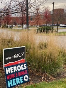 A sign at Mississippi Valley Regional Blood Center, Davenport.