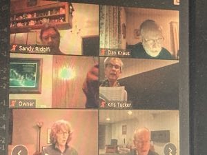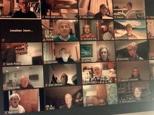 Though singers can’t hear each other, “It’s nice to see other people’s faces,” Tucker said of Zoom. “Especially in this place and time, we all feel so isolated. The great joy for me is to have a reason to sing again. I sing around the house, but who cares?