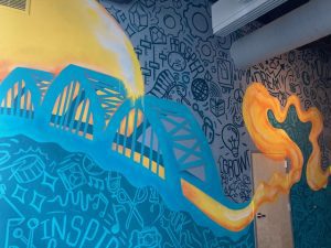 A new mural at Underground Economy (on RME’s second floor) was painted by Brandon Nees of Davenport.
