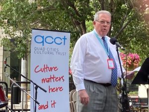 Scott Van Vooren, board chair for the Quad Cities Cultural Trust, spoke to the crowd.