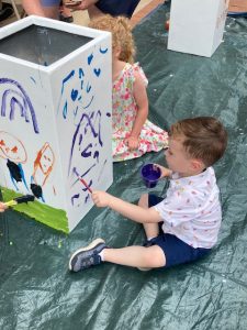 Connor Baxter, 3, painting a planter on Tuesday during “Paint the Town.”