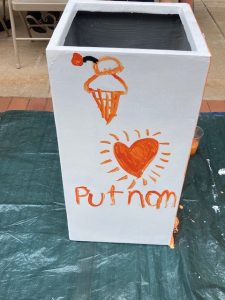 Painting a flower pot on Davenport’s Main Street during “Paint the Town.”