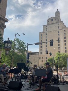 A Quad City Symphony brass quintet performed at 2nd and Main streets Tuesday, June 8.