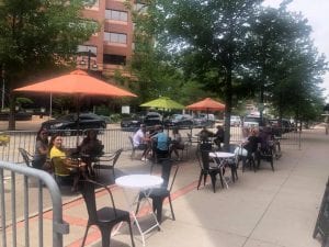 Stacey McIntosh, the new DARI program manager, said her city is unique since it has the pedestrian plaza area (on 2nd Avenue between 17th and 19th streets). They worked with Shive-Hattery to maximize outdoor seating throughout the city, including other downtown restaurants like Huckleberry’s.