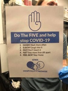 In early May, Iowa allowed restaurants to reopen at half capacity, bars at the end of May, and capacity limits lifted by mid-June (with social distancing and sanitation requirements like Illinois).