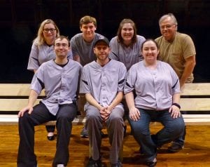 With the RHP cast of “Rounding Third” are Dana Skiles, front right) and Mike Skiles (rear right).