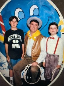 Mark McGinn, center, in 1996’s “Will Rogers Follies,” with sons Dan (right) and Sean.