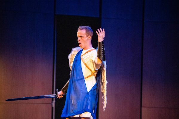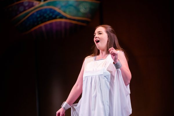 “There were multiple times that hit me with her,” she said of the spectacular Shafer. “Not only did she have a glorious voice, just how she embodied the part. After being told that Karkinos was coming, she collapses, it was wow…She says, ‘What have I done? Why me?’ It was heart-wrenching.