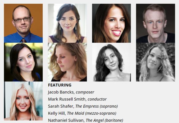 The stellar cast was comprised of soprano Sarah Shafer as The Empress (who represents someone battling cancer), mezzo-soprano Kelly Hill as The Maid (representing cancer survivors), baritone Nathaniel Sullivan as The Angel (symbolizing the medical community), and University of Iowa dancers Kara Bouck, Hanna Schaeffeler, and Emily Trapnell (representing townspeople and Karkinos), choreographed by Kristin Marrs, a friend of Bancks.