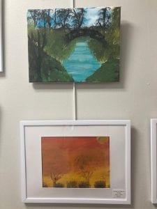 Paintings by 8-year-old Levi Folker of Davenport are on display through May.