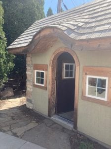 A child’s-size Hobbit playhouse at the Children’s Garden.