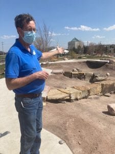 In late April, they will plant perennials and shrubs. Last fall, a variety of trees were planted. There will be a canoe put in at “Lake Itasca,” so kids can pretend they’re camping.