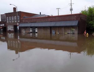 The former Ragged Records/Trash Can Annie’s building after the 2019 flooding.
