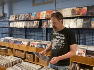 more curated. It still holds a lot of stuff. I put out 30,000 new and used vinyl pieces.” There are also shelves in back with thousands of CDs.