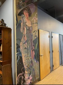 A tall 1981 painting by Leslie Bell was at Trash Can Annie’s on Brady Street, but was too large to fit in the old East 2nd Street location. Now it fits perfectly in its new home.