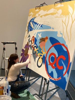 Dawn painting for the Visit Quad Cities brand launch of “QC, That’s Where” Oct. 28, 2021 at the Figge Art Museum lobby.