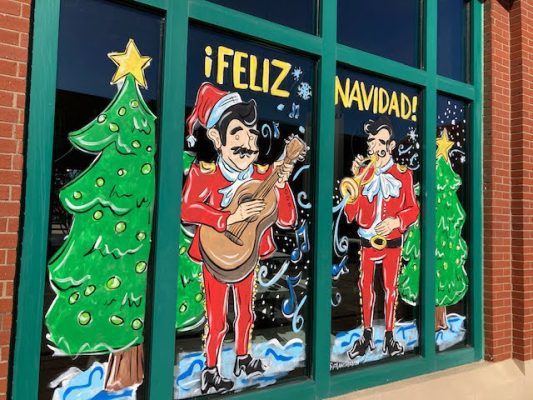 She paints windows all through the year, over the past year. “The community really enjoyed this. They’re bright and colorful and they add so much flair or a vibe to the outside windows.”