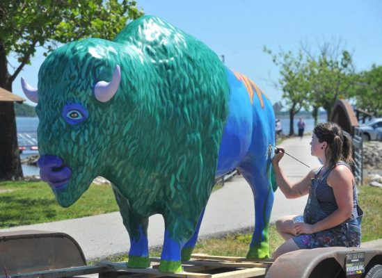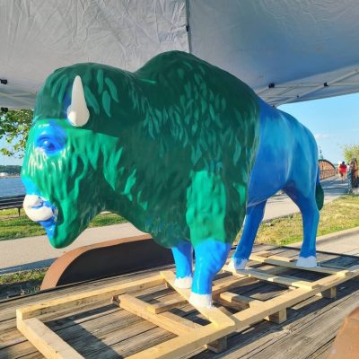 Dawn’s bison sculpture in summer 2021 for the Bison Bridge project.