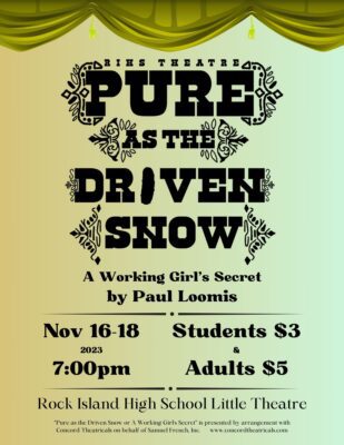 Rock Island High School Theatre presents Pure as the Driven Snow! You won’t want to miss out on this year’s fall play! You have three chances to catch it starting on Thursday, Nov.16 through Nov. 18.
