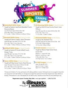 Rock Island Park Board online registration is now open for mini youth sports skills outdoor camps including basketball, baseball, softball, soccer, xc/running, pickle ball, tennis and golf. All programs will be limited to small groups and have safety guidelines in place.