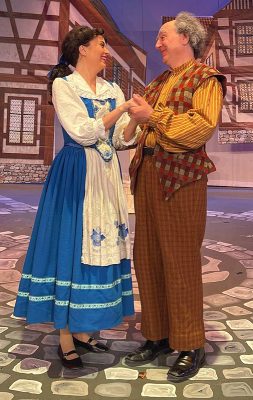 Another crucial casting is that of the antagonist Gaston. He’s got to be a jerk, but not too much of a jerk, and he’s got to be funny in a vain and over-the-top narcissistic way. Joe Collins is pitch perfect in his boots, giving him just enough of a mix of smarm to dislike him but just enough stupidity to discount him as a comedic foil and keep the airy mood of the show.