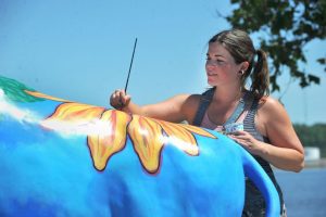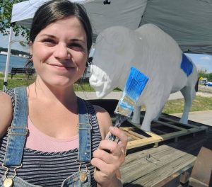Dawn painting Buddy Bison, which will be used to promote the Bison Bridge project.