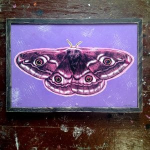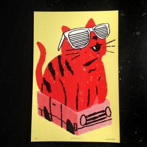 He offers original illustrations and designs, hand screen printed, siged, editioned and hand framed.