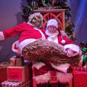 John as Santa Claus, with Sara Nicole Wegener as the Grinch, in December 2019.