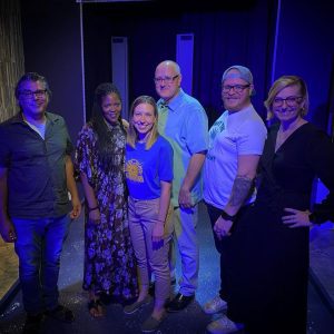 “Enemy of the People” director Victoria House (right) with cast members (from left) Mischa Hooker, Alisha Hanes, Jo Vasquez, Doug Kutzli and Ian Heaton.