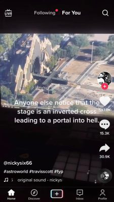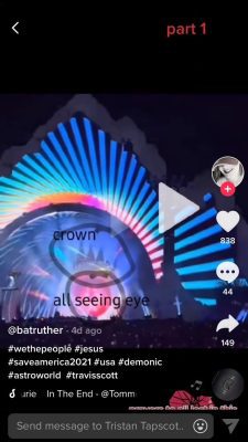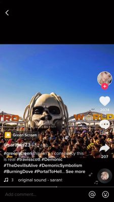 One of many TikTok videos pointing out Illuminati symbolism at the Scott concert.