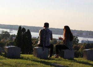 Filming “Feathers” in 2017 at Moline’s Riverside Cemetery.