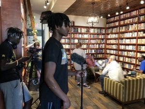 Filming “Joy” in 2019 at Davenport’s The Brewed Book.