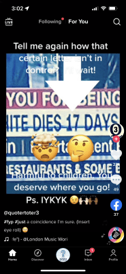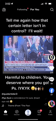 The second message, “Harmful to children. You deserve where you go!” is meant to reference White’s connection with pizzagate, satanic sacrifices, Tom Hanks, Toby Keith, Mayor McCheese, the inverted star on the side of Hardees, etc. And “IYKYK” is the abbreviation for “If you know you know.” Which is ironic because most of the people believing this seem to really not know how friggin’ batshit crazy they sound.