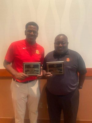 Two Rock Island High School Basketball Head Coaches received the 2022 Charles and Annie Robinson Education Image Award from the Rock Island County NAACP at the annual Freedom Fund Banquet and Image Awards on June 25, 2022.