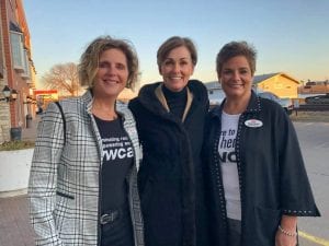 YWCA Quad Cities CEO Julie Larson (left) with Iowa Gov. Kim Reynolds and Deanna Woodall at the YWCA Iowa Empowerment Center in Davenport last December.