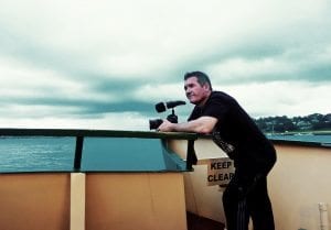 Justin Holstein out on location shooting the “Sir Noface” documentary.